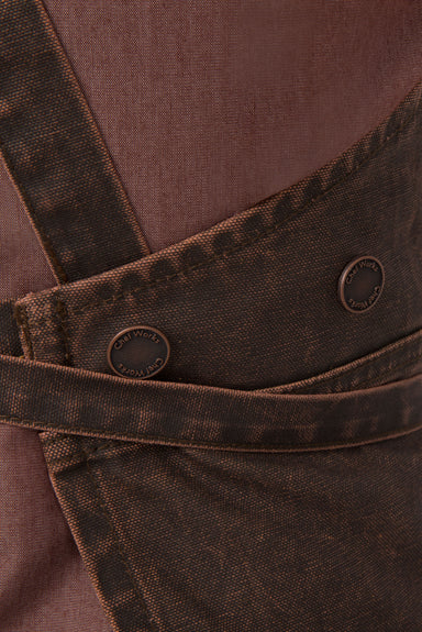 Available in chocolate/rust 100% Cotton 10.2 oz. Cotton canvas with artisan finish Adjustable cross-back ties with snap tabs Towel loop Right hip ...