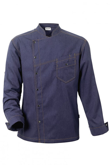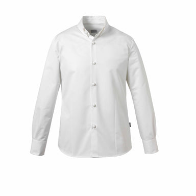 Men's kitchen jacket. Stand-up collar and inside in terry-towelling. Snap buttons concealed under placket. Long sleeves with cuffs. Flat pleats on ...