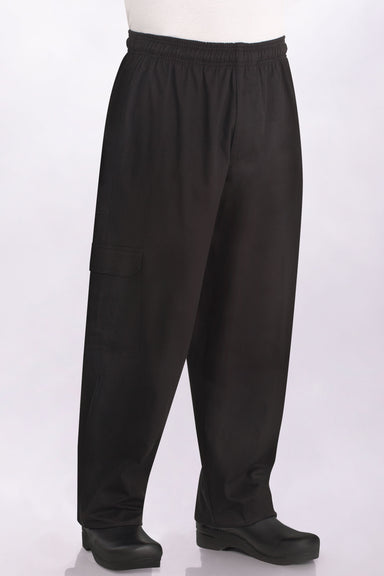 Available in black only 100% Cotton 7.2 oz. Elastic waist with drawstring Zipper fly Two cargo pockets with Velcro?? flaps Two side-seam pockets T...