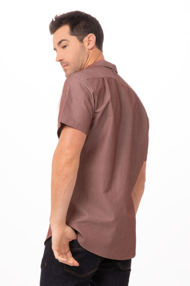 Available in brown, blue stone or slate 57% Cotton, 43% Polyester Blend 4.3 oz. Back yoke with pleats Short sleeves Back-collar apron holder with ...