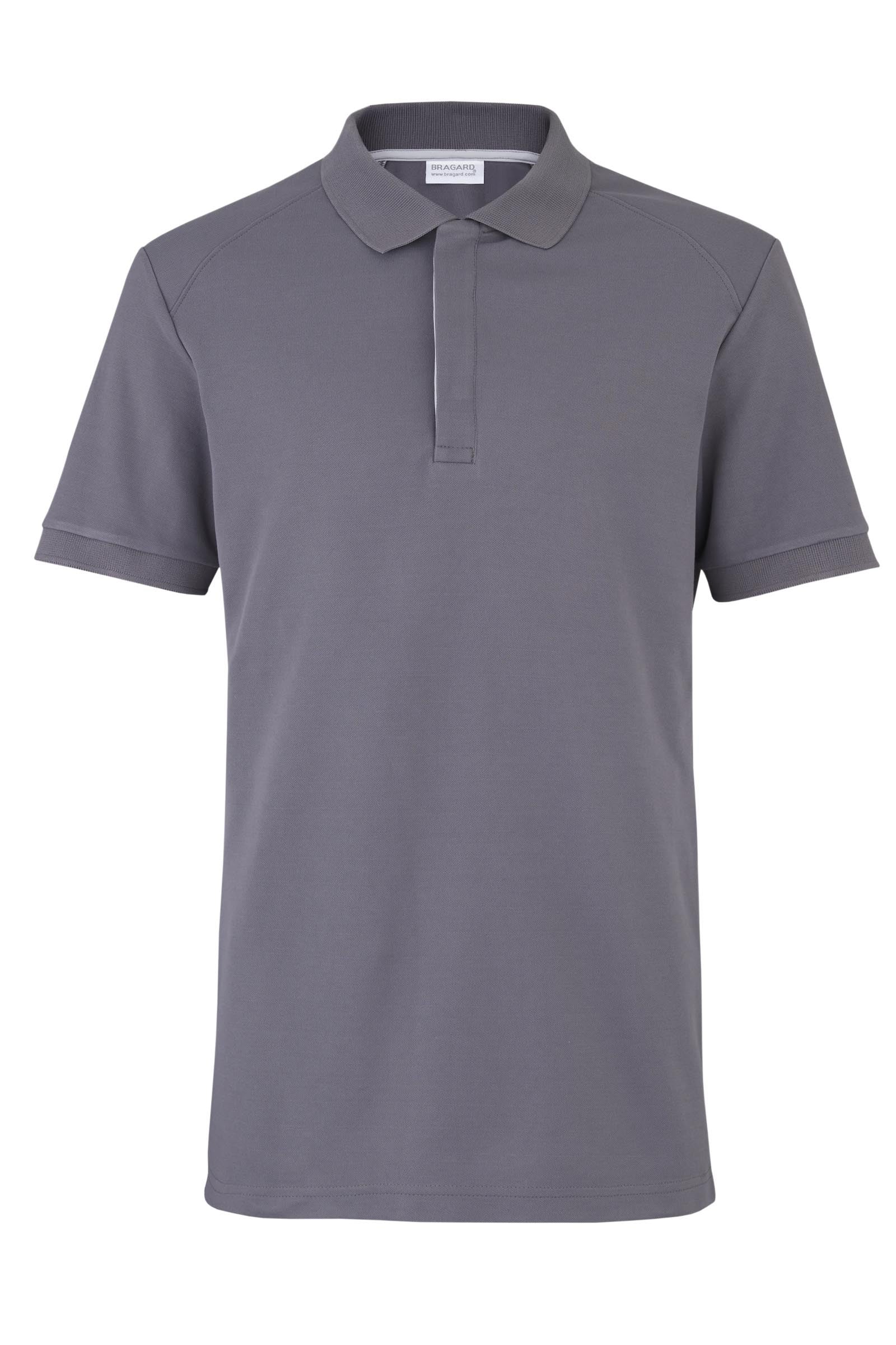 Size GuideMen's polo shirt. Ribbed collar and cuffs. Placked with concealed press stud fastening. Shoulder yokes. Short sleeves. Side slits. Length 73,5 cm