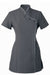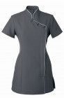 Size GuideLadies asymmetrical tunic. Short sleeves fitted standcollar front side button fastening 2 side pockets Side slits Comfort pleat in back armhole in anti perspirant coolmax fabric